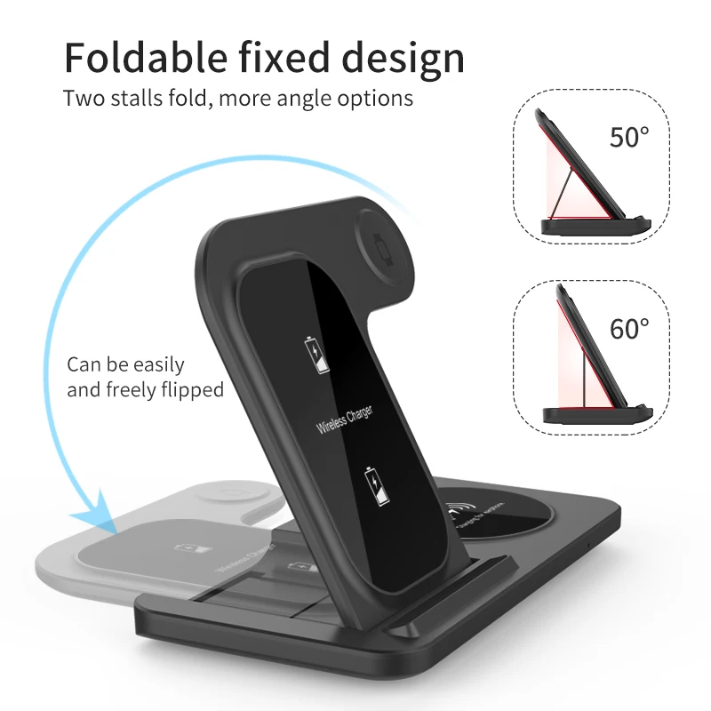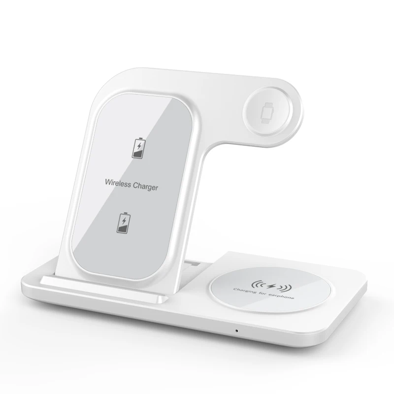 Carregue vários dispositivos simultaneamente com a conveniência do nosso suporte de carregador sem fio 3 em 1. Projetado para proporcionar eficiência e praticidade, este carregador é perfeito para quem busca uma solução de carregamento versátil e rápida.